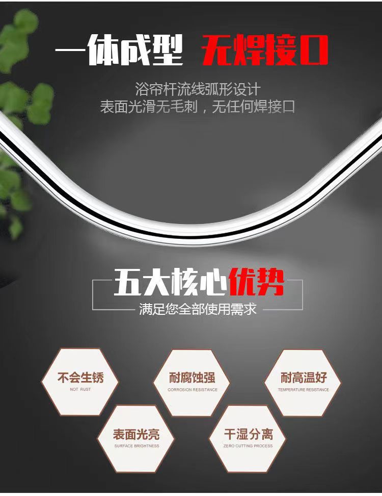 浴帘套装免打孔弧形伸缩浴室浴帘杆防水卫生间加厚隔断帘子挂帘布