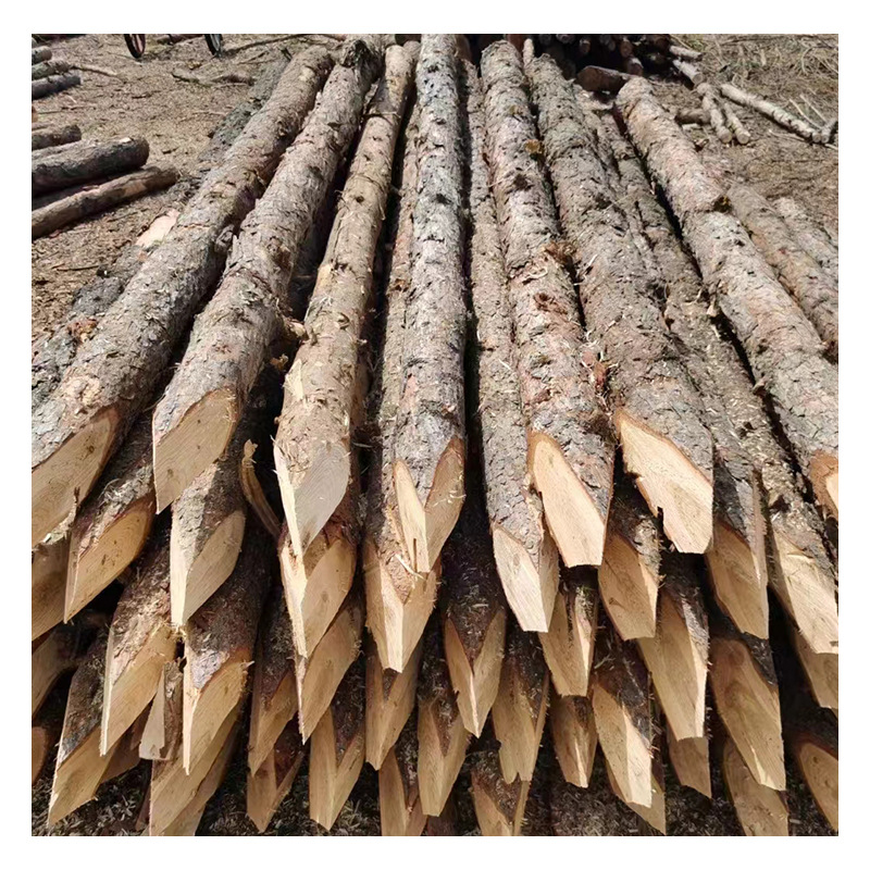 精品松木桩原木景观装修工地河堤防汛用削尖打桩木桩厂家现货直发