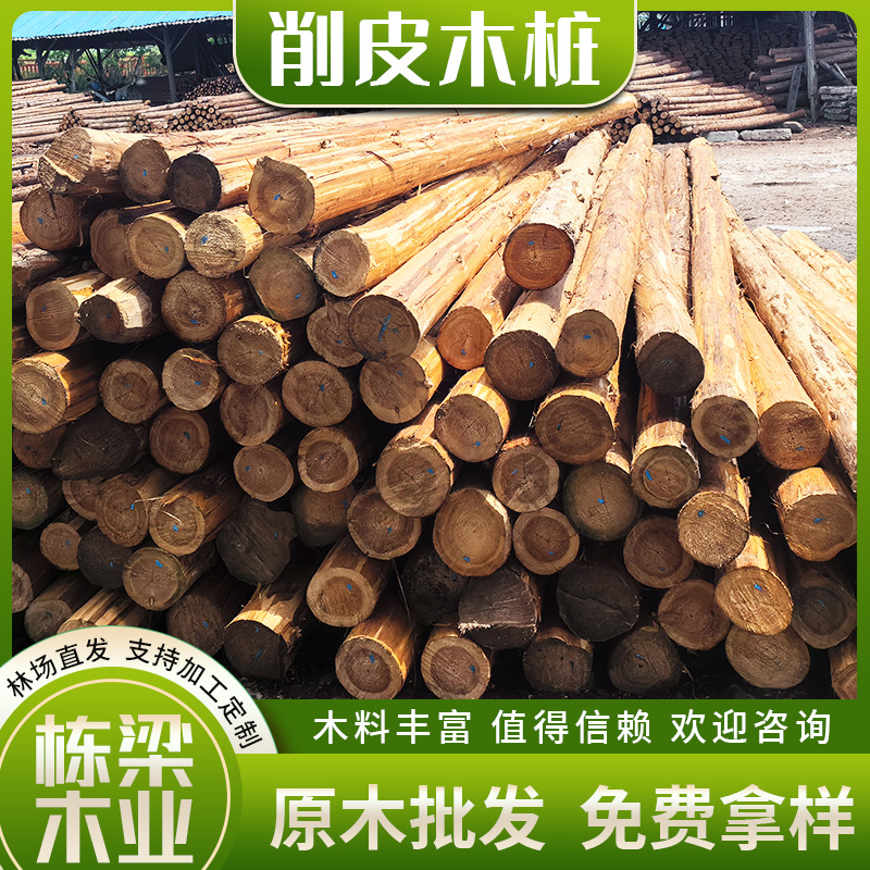 削皮原木木材加工打桩杉木桩松木桩包装箱托盘木材林场多规格直销