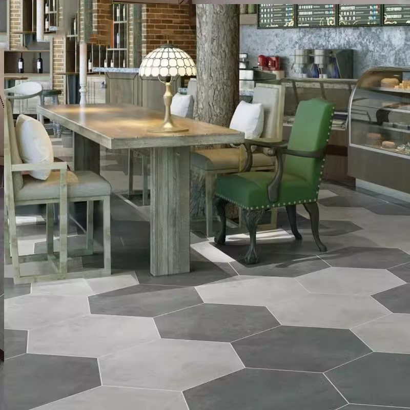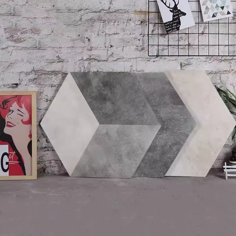 微水泥灰大六角砖北欧工业风仿古六边形瓷砖520X600办公耐磨地砖