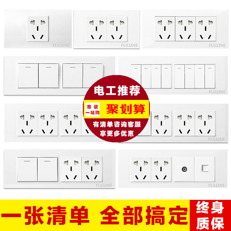 118型墙壁暗装5五孔10孔20二十孔六九孔雅白色工程款开关电源插座