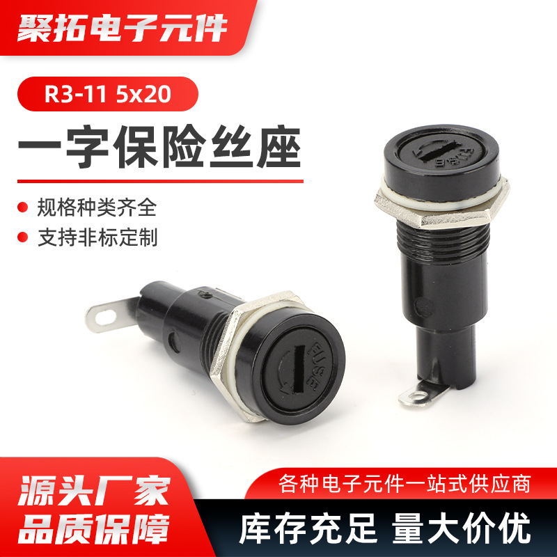 R3-11 一字5x20保险座 面板安装一字型管座 5x20电木保险丝座10A