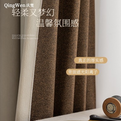 庆雯新款窗帘成品母婴级超柔雪尼尔加厚全遮光窗帘轻奢法式奶油风