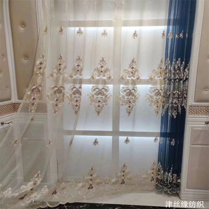 新款简欧绣花窗纱客厅卧室绣纱帘成品制作欧式窗帘飘窗阳台海棠纱
