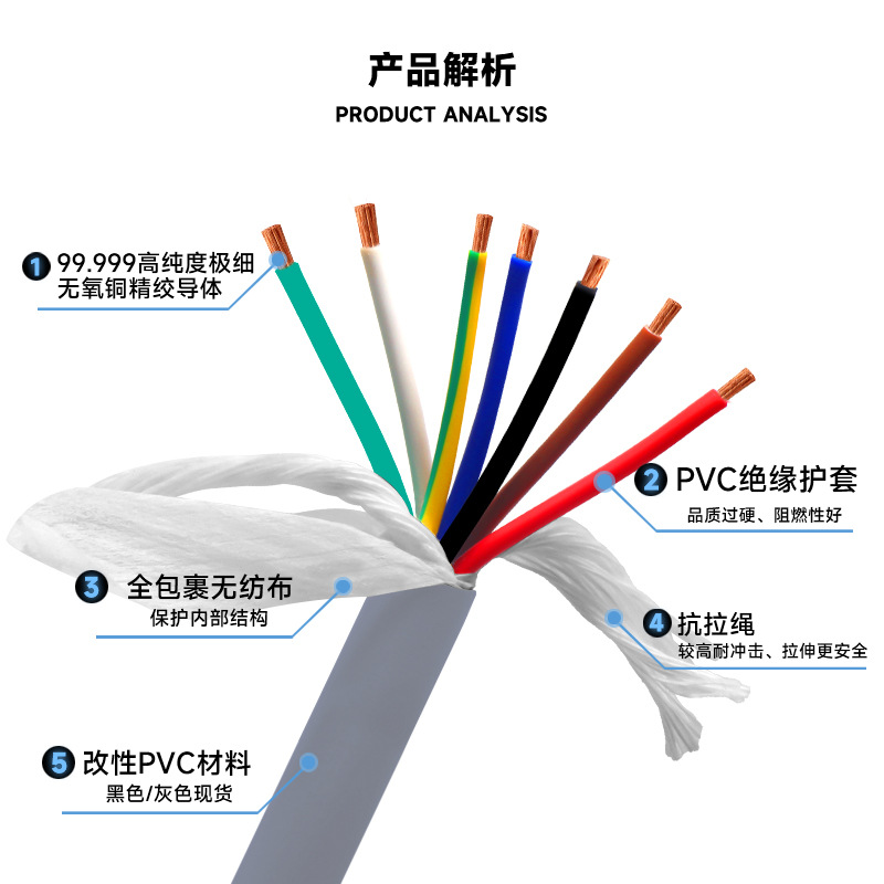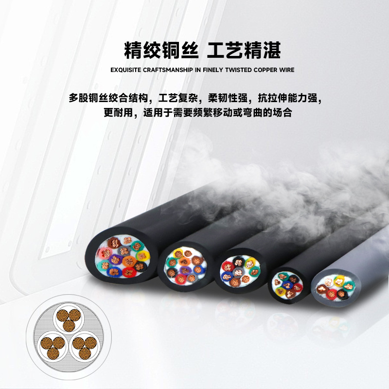 国标纯铜高柔拖链电缆信号控制线6/7/8/10/12芯trvv高 柔拖链电缆