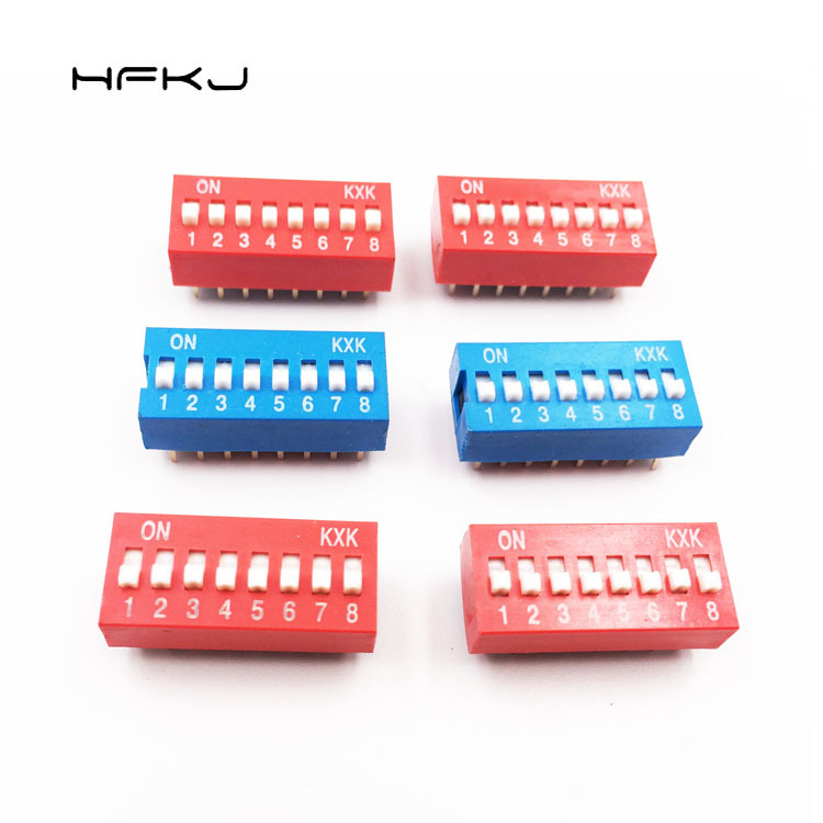 拨码开关红色蓝色指拨开关 2.54八位8P拨动开关 平拨编码开关直插