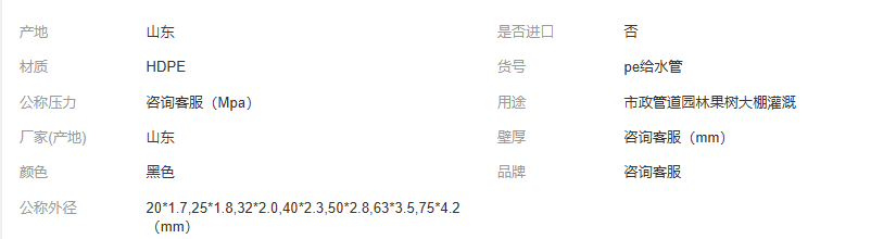 定制pe给水管黑色灌溉管PE盘管市政管道园林果树大棚灌溉农用pe管