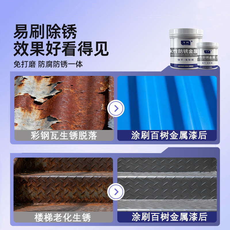 免除锈铁锈转化剂水性防锈漆金属漆彩钢瓦翻新固锈剂免打磨工业漆