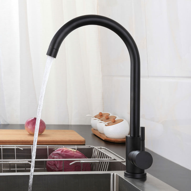 开平304不锈钢拉丝洗菜盆立式旋转大弯水槽厨房冷热混水龙头