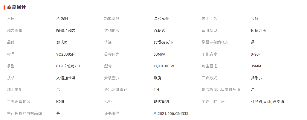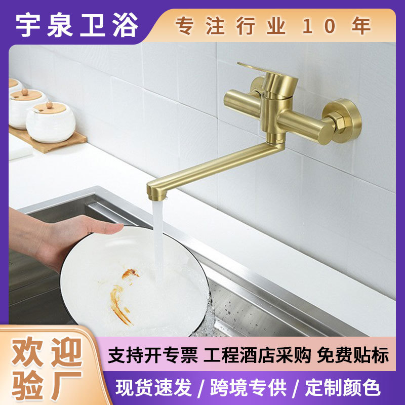 304不锈钢欧美款金色入墙式双孔加长嘴拖把池家用冷热厨房水龙头
