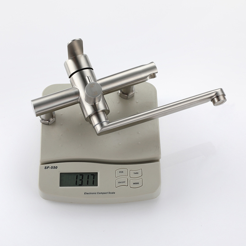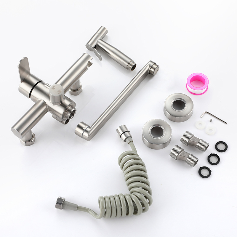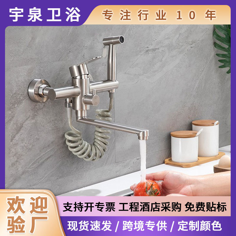 黑色冷热不锈钢入墙式多功能加长嘴带喷枪俄罗斯双孔厨房水龙头