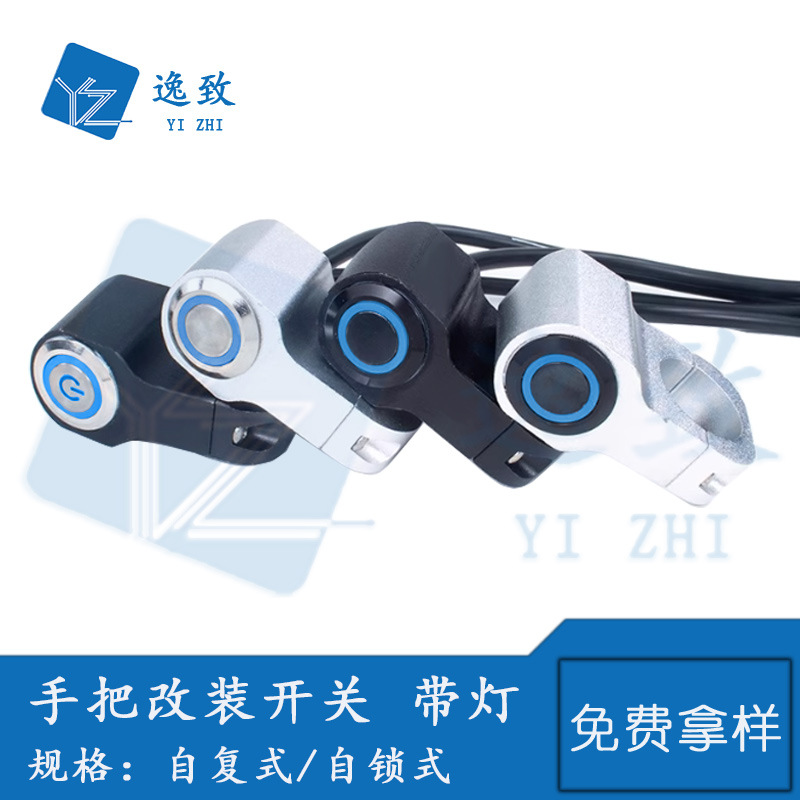 电动车摩托车手把改装双闪带灯金属按钮开关喇叭通用12V-24V