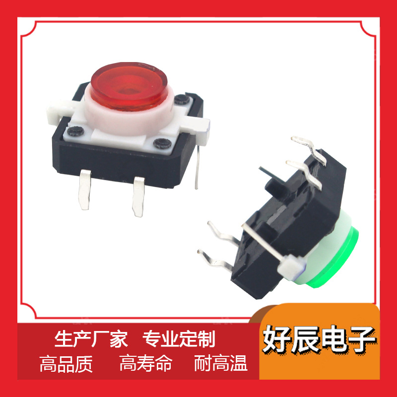 轻触开关带灯12*12 5种颜色LED高亮4脚复位按键微动按钮常开立式