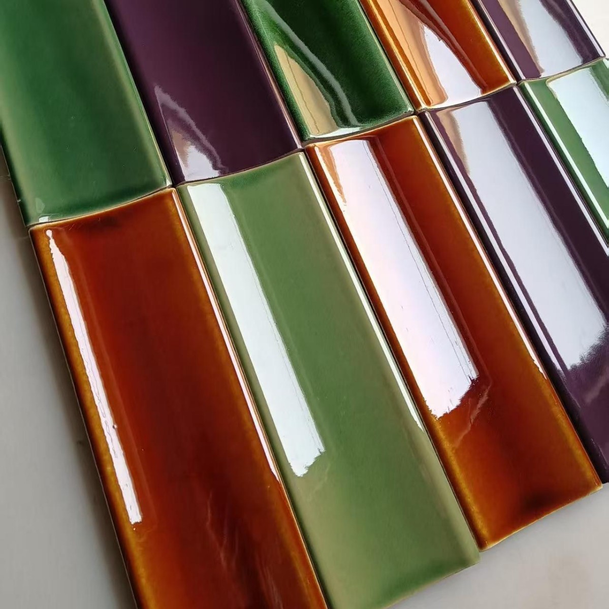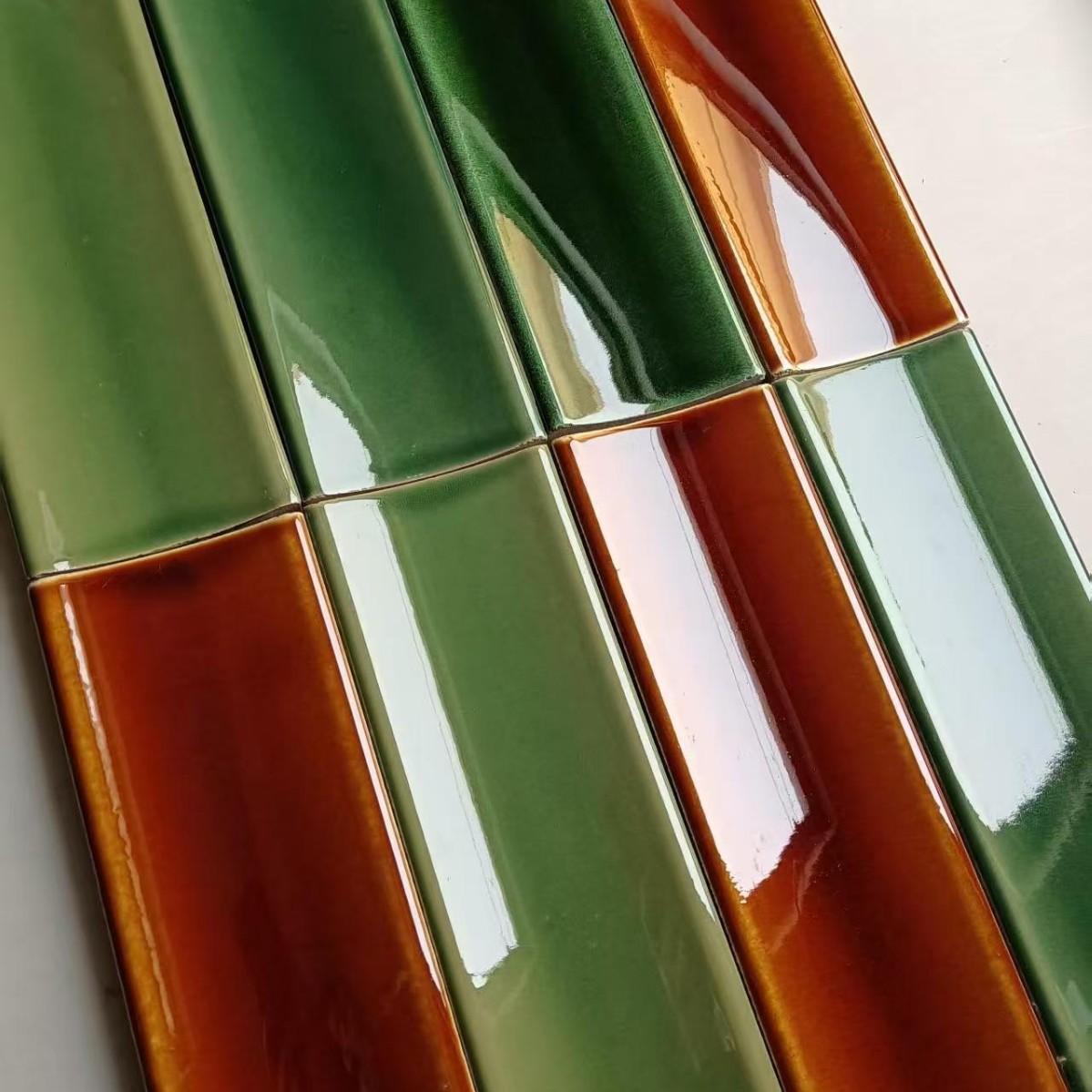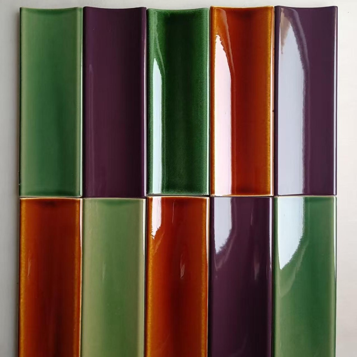 窑变绿色凹面砖 灰色哑光凹面砖 圆弧面手工砖 卫生间瓷砖