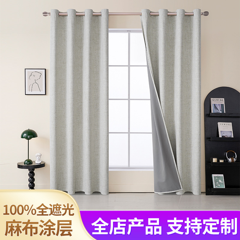 2025跨境爆款100%全遮光涂层外贸亚麻窗帘彩麻棉麻窗帘厂家批发