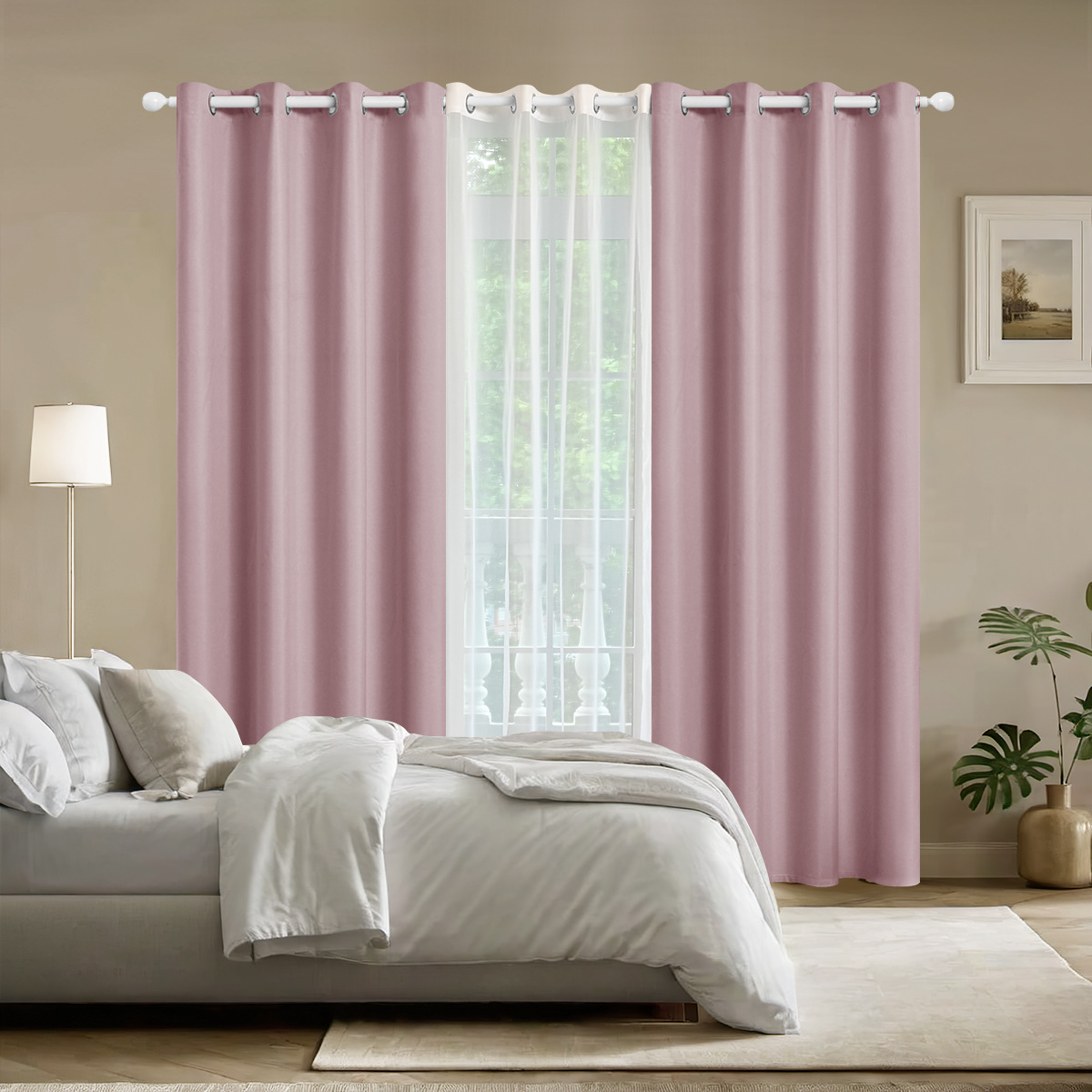跨境打孔窗帘组合套装 春亚纺全遮光窗帘2pcs配双串特丽纶窗纱1pc