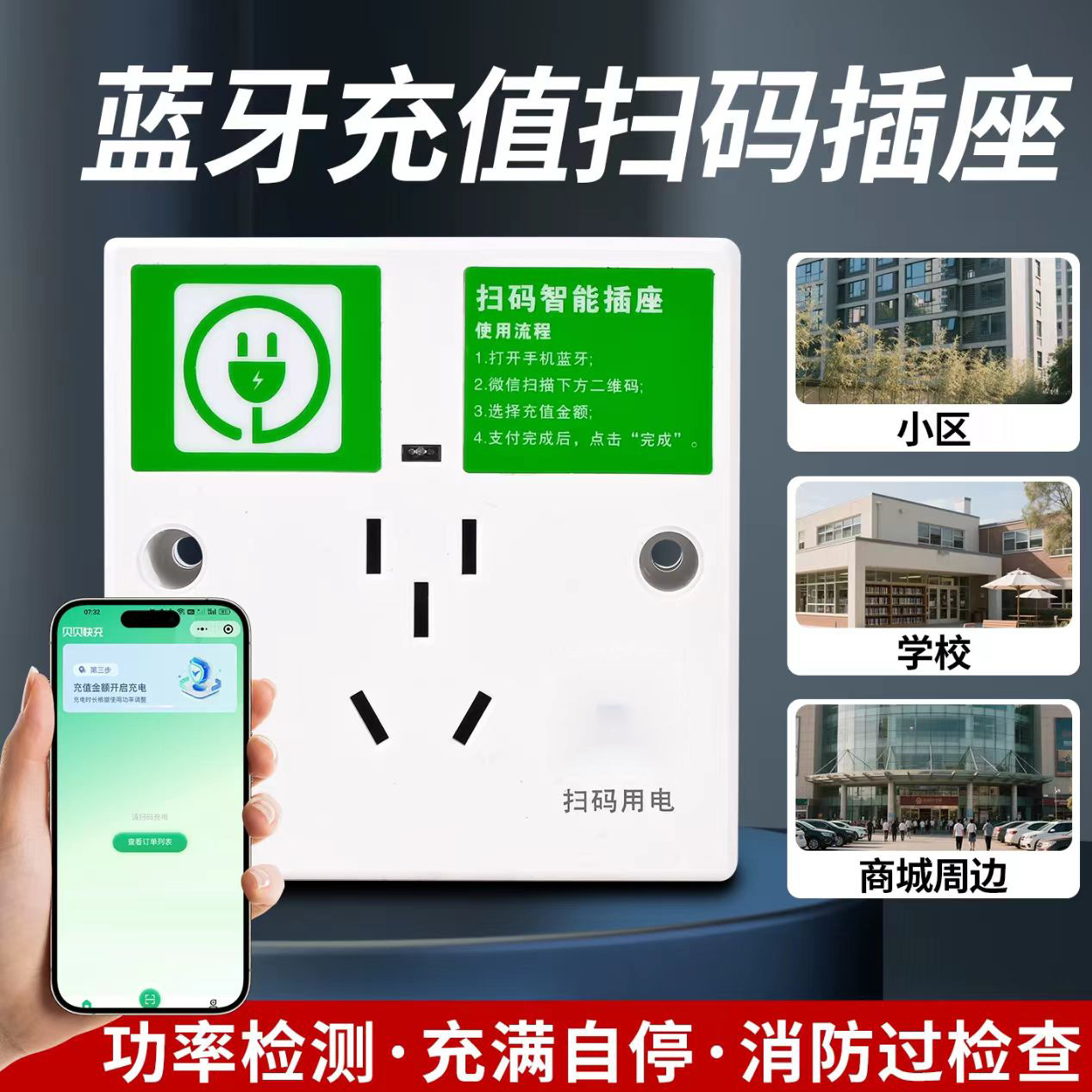 电动车扫码充电智能远程充电桩小区出租房共享收费蓝牙插座快充
