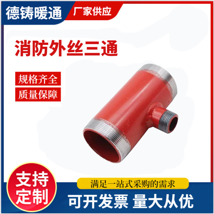 厂家供应工业消防栓消防三通 消防栓箱专用红色外丝异径变径三通