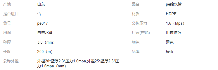 康雨厂家定制pe给水管软管自来水改造用耐磨塑料管 pe给水管