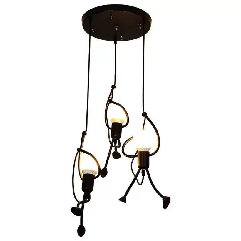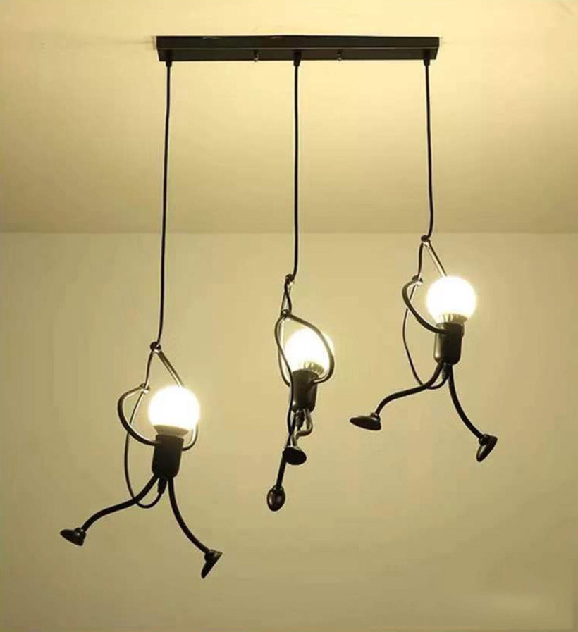 复古铁艺小铁人吊灯餐厅咖啡厅服装店客厅卧室LED灯创意小人灯具