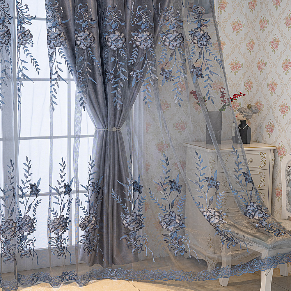 新款遮光窗帘布卧室北欧简约客厅阳台大气双层绣花窗纱一体落地
