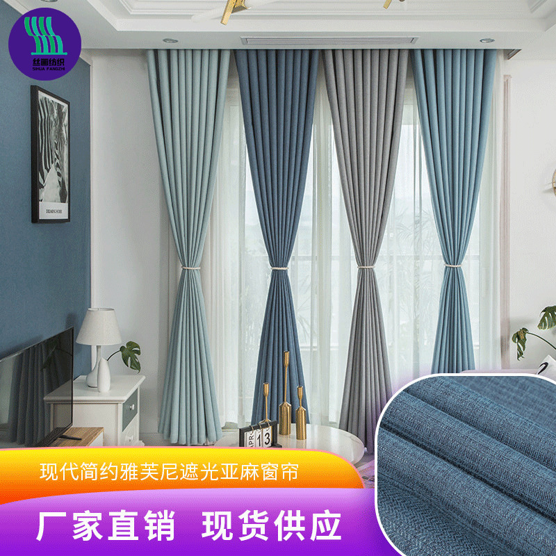 厂家现代简约遮光亚麻窗帘纯色客厅卧室雅芙尼窗帘布现货定制