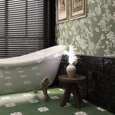 法式复古风 海基布瓷砖 卫生间浮雕花砖浴室厨房厕所橄榄绿花墙砖