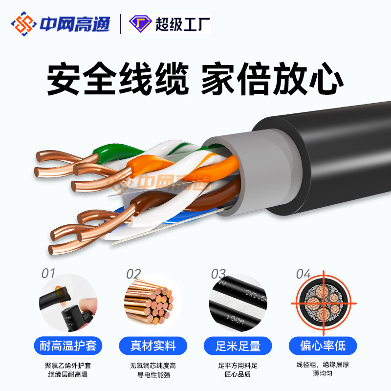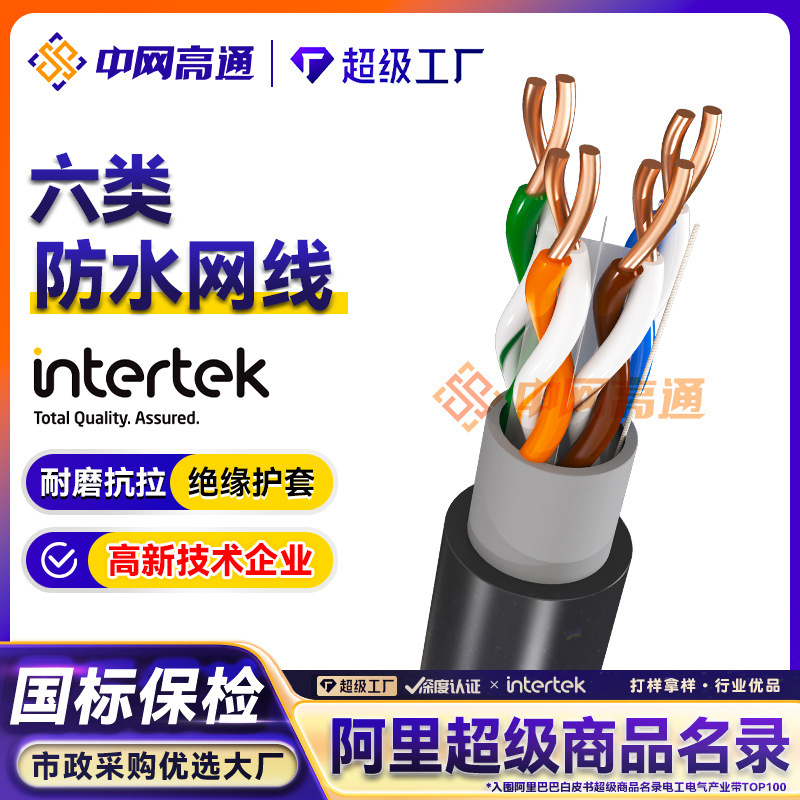 高通 六类室外防水网线高速千兆无氧铜黑色护套监控家居网络布线