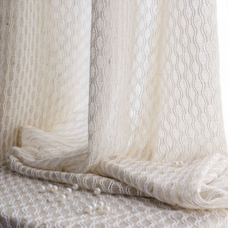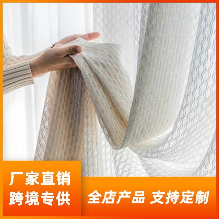 亚马逊速卖通跨境专供法式刺绣米色窗帘纱客厅阳台飘窗窗帘