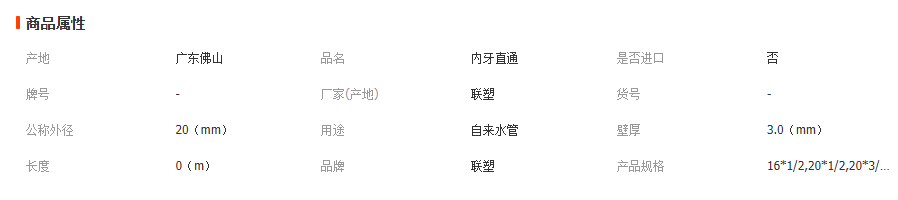广东联塑PPR内牙内丝直接内螺纹20×1/2寸联塑内牙直通内丝直接