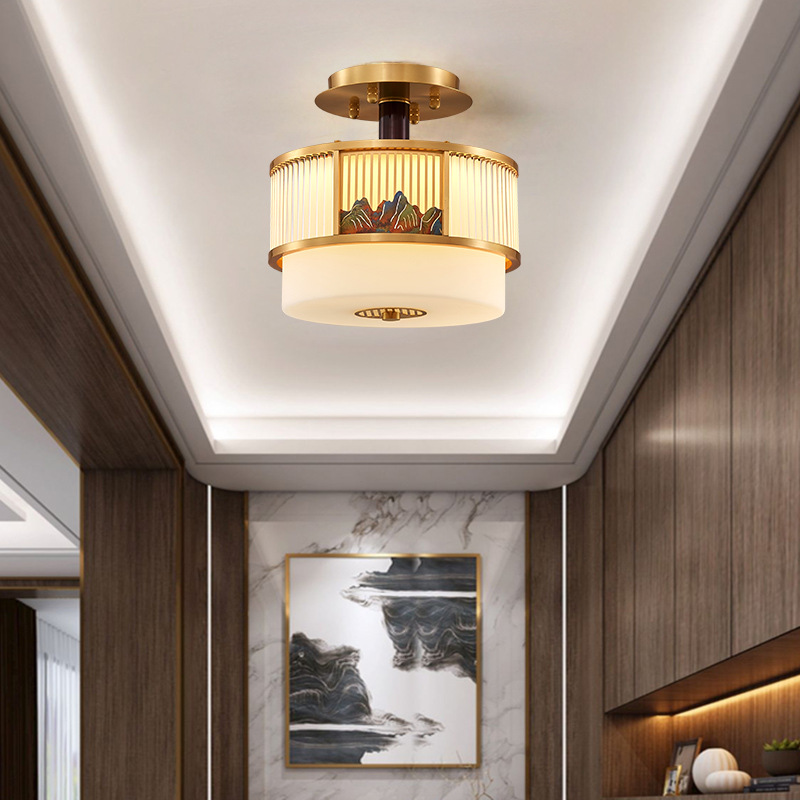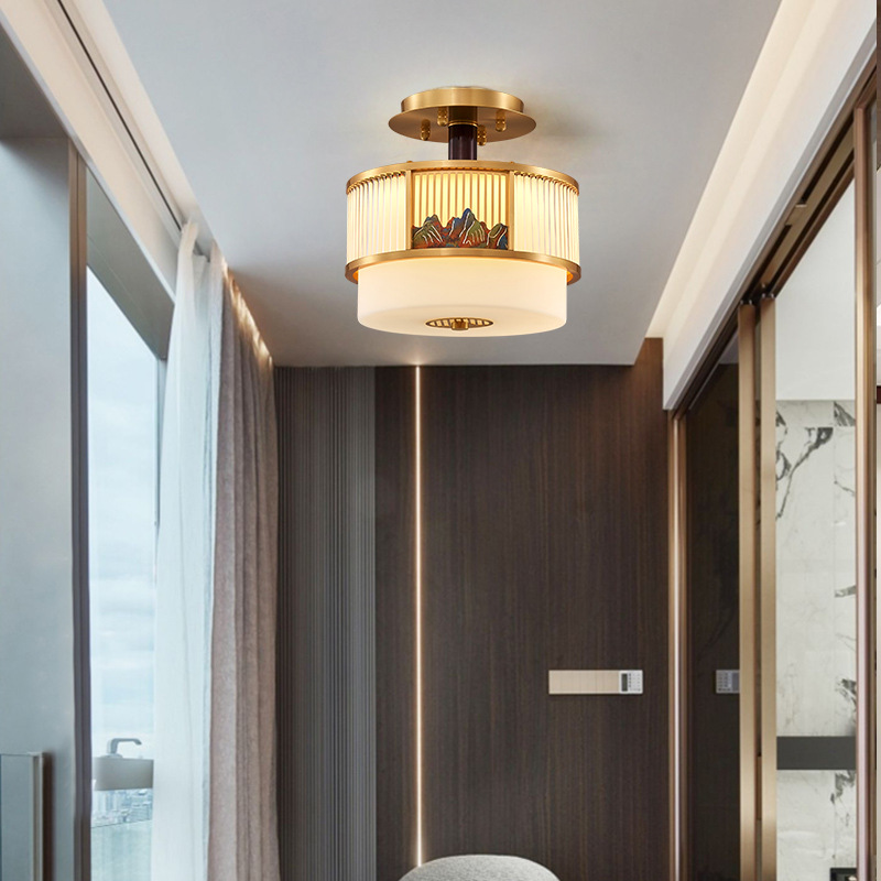 新中式全铜吸顶灯卧室书房创意阳台灯玄关过道灯禅意中国风灯具