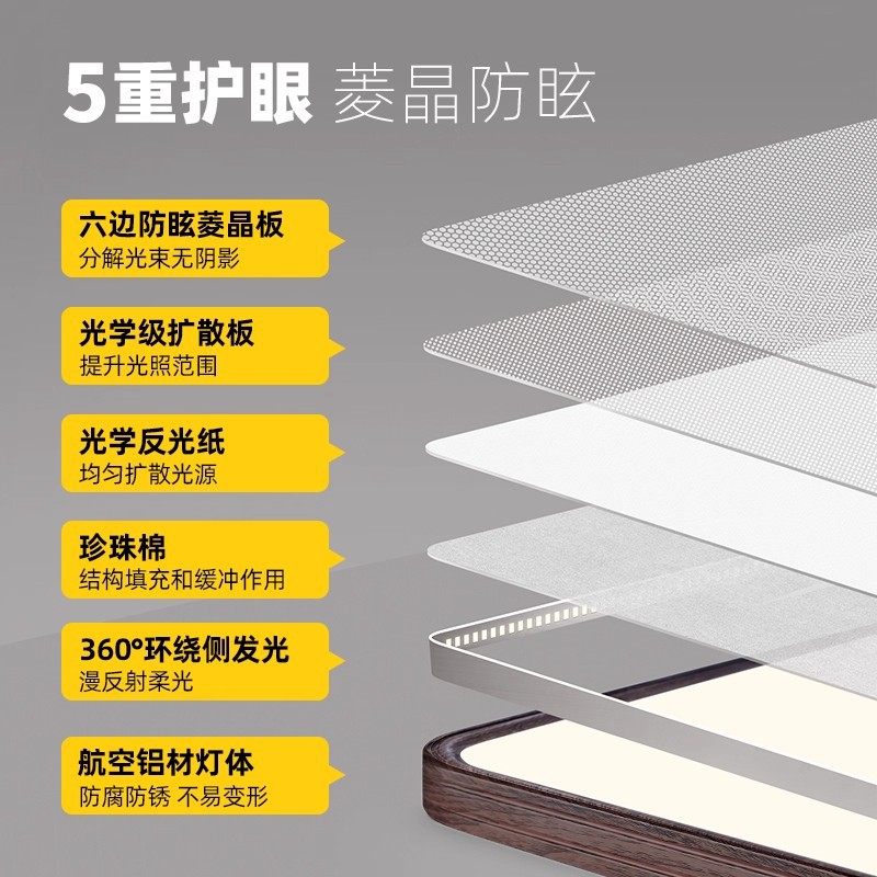 中古风复古led全光谱护眼客厅主灯日式极简侘寂风胡桃木纹吸顶灯