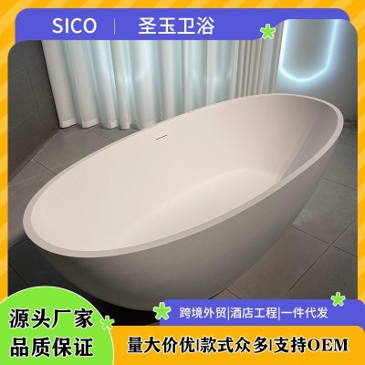 薄边鹅蛋形浴缸浴缸家用民宿酒店浴盆浴缸极简风人造石浴缸