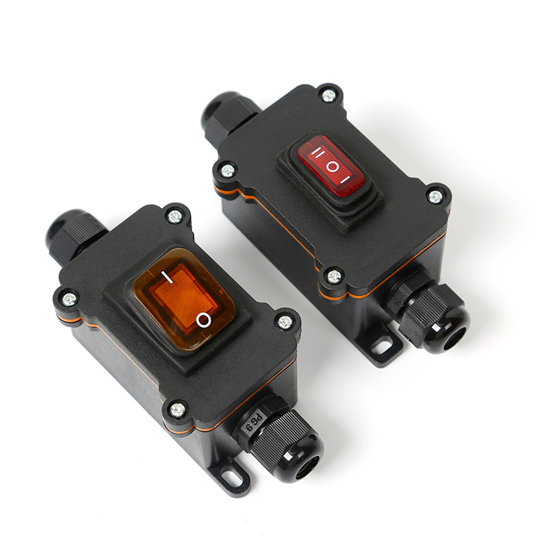 大功率双头出线防水接线盒线上中途船型开关户外按压式开关批发