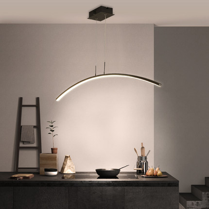 北欧餐厅吊灯吧台极简长条吊灯现代简约条形led灯弧形吊线餐厅灯