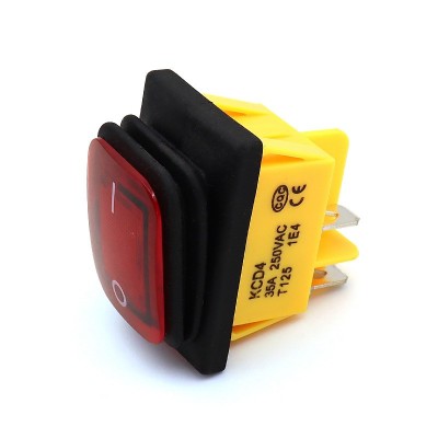 防尘防水船型开关KCD4带灯翘板4脚2档蒸煮炉开水桶大电流电源开关