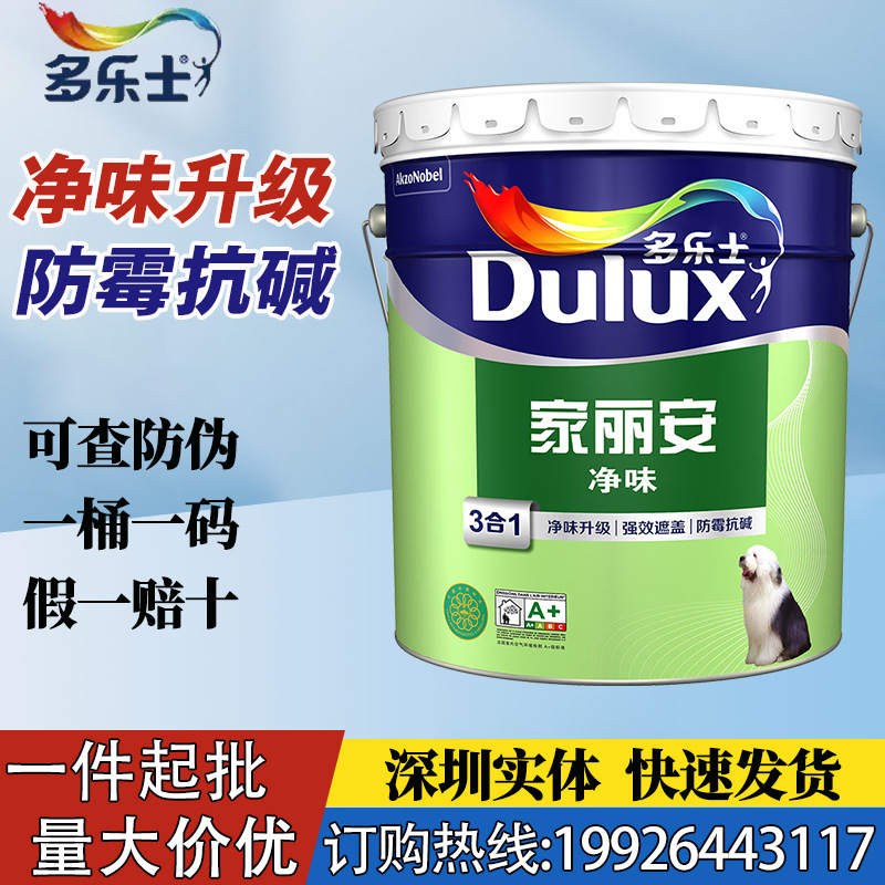 多乐士漆家丽安净味3合一 室内墙面漆翻新油漆涂料家用白色乳胶漆
