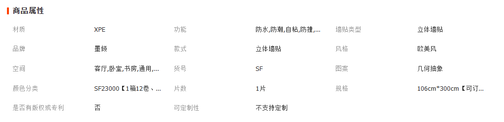 墙贴; 地毯贴; 地贴; 墙纸自粘; 软包