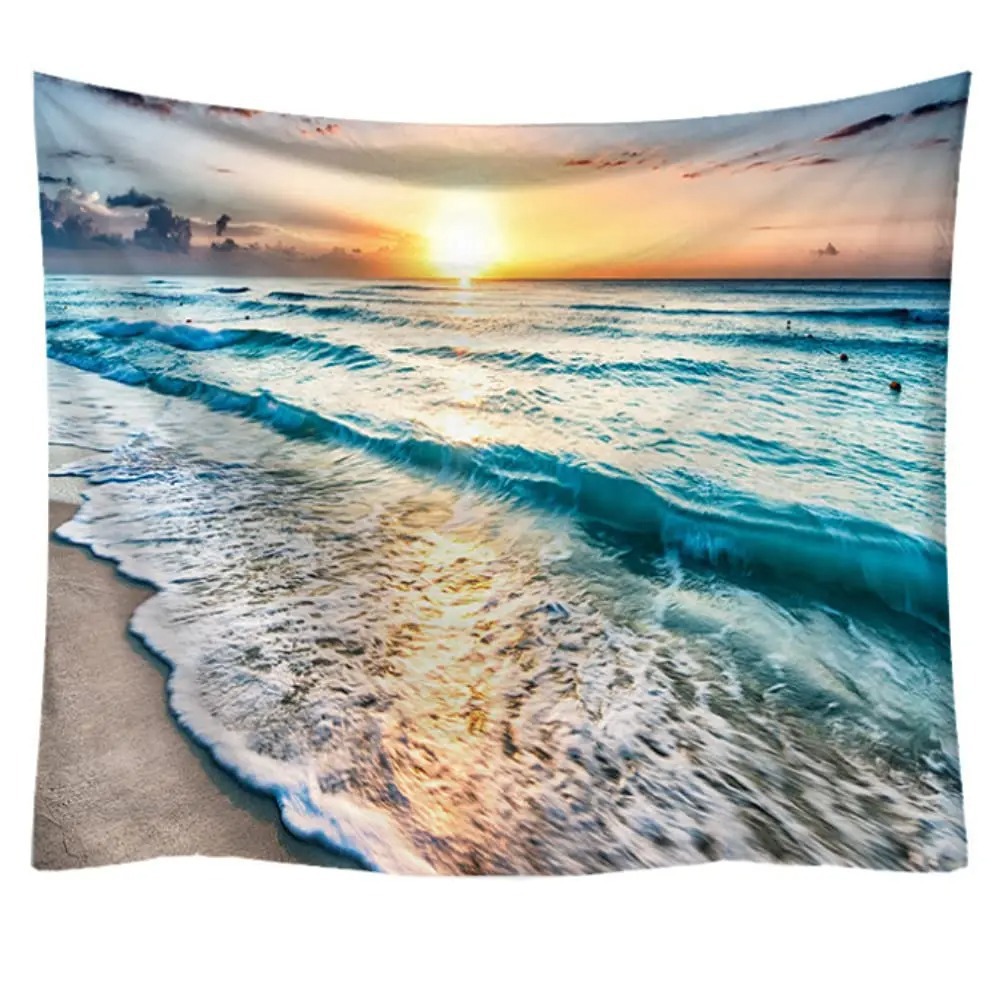 沙滩海洋风景挂毯挂太阳海景景观挂毯窗户挂毯卧室客厅家居装饰