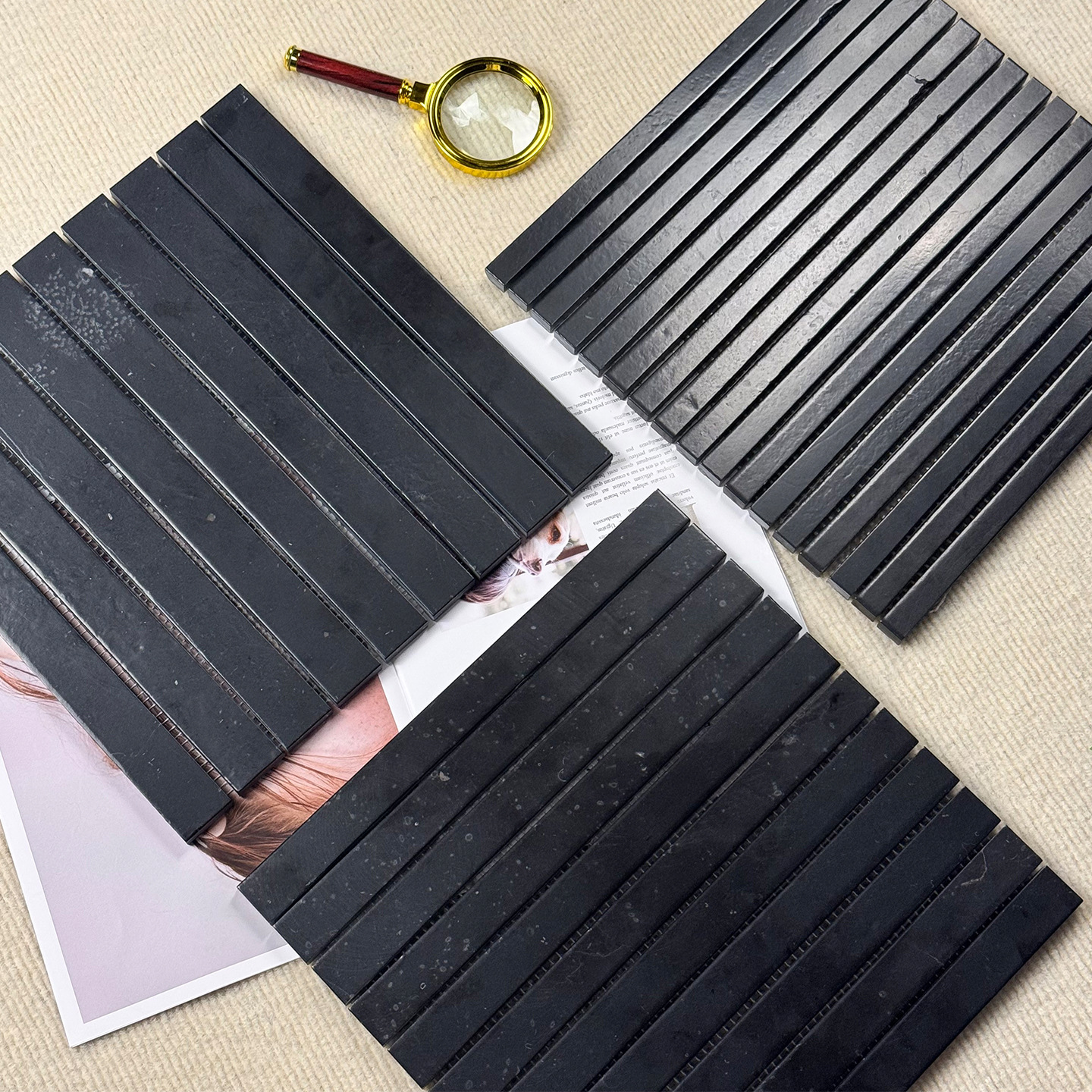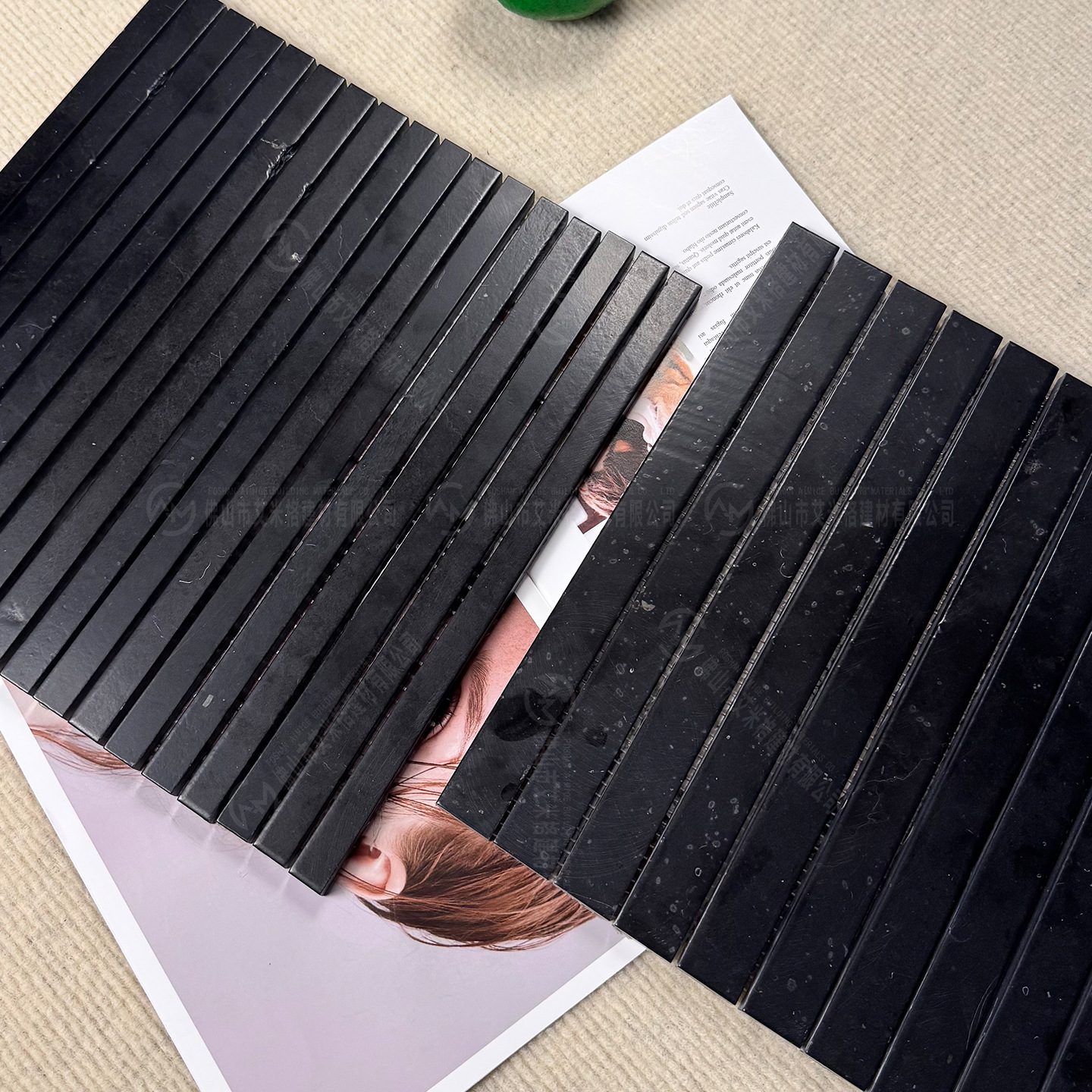 艾米格建材黑色长条天然石材马赛克咖啡服装店卫生间墙面吧台瓷砖
