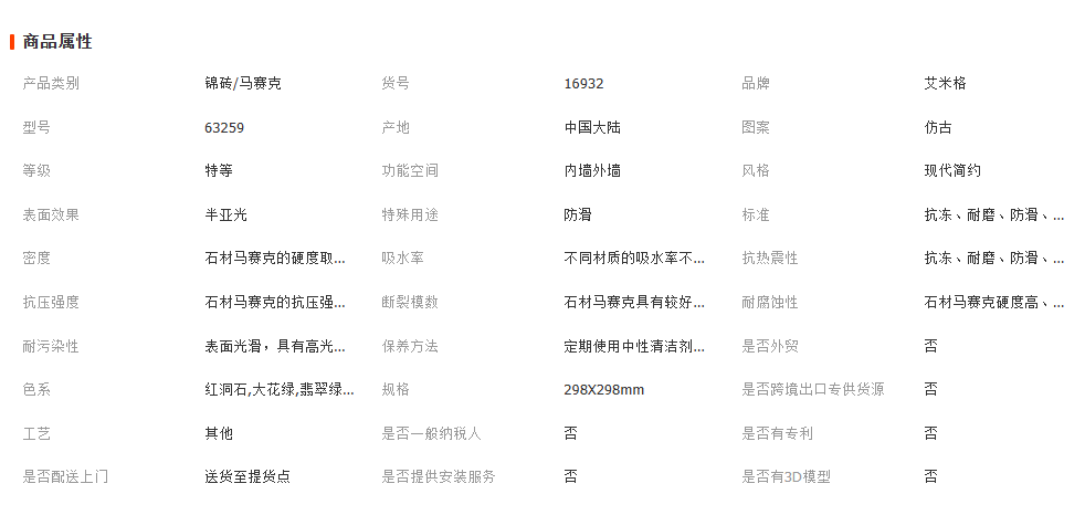 主营 销售:建筑材料、装饰材料;研发、销售:瓷砖、卫生洁具、马赛克