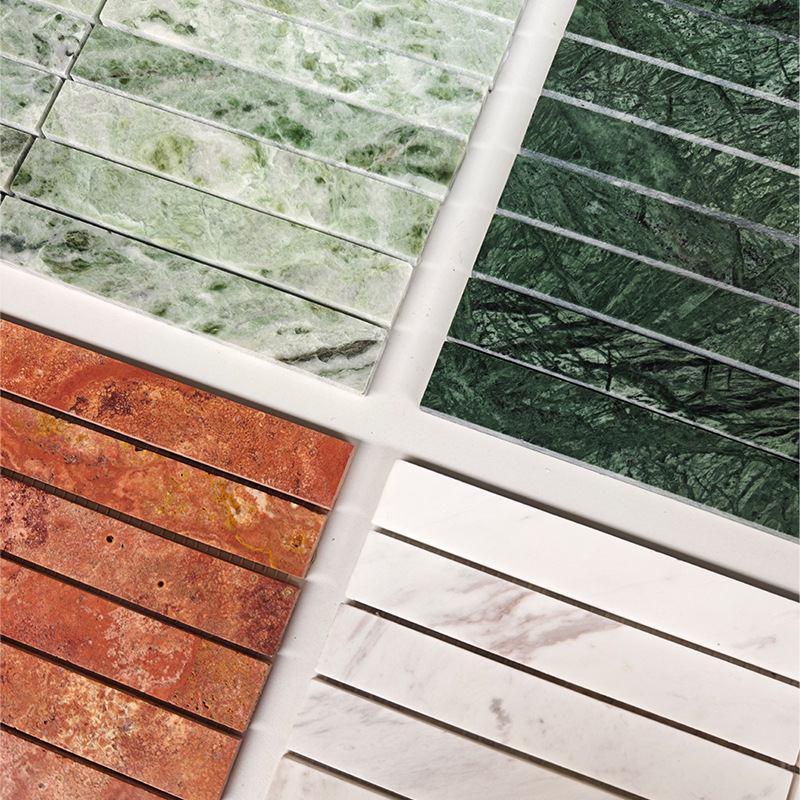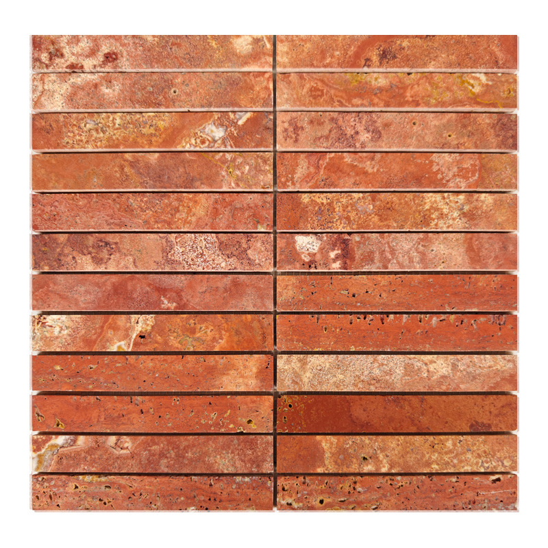 佛山厂家天然红洞石材长条马赛克民宿酒店餐厅咖啡吧台庭院背景砖