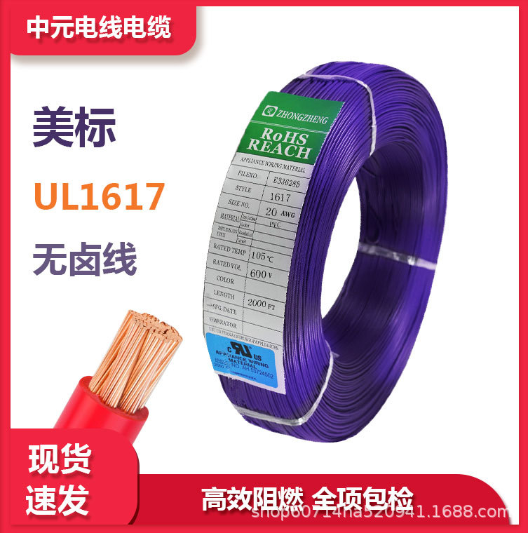 UL1617电子线22纯铜AWG阻燃PVC连接线高压电线高温镀锡铜UL认证