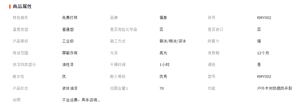 主营产品或服务: 木器防腐漆; 金属防锈漆; 环氧防腐漆; 锤纹波纹桔纹漆; 水性印刷...