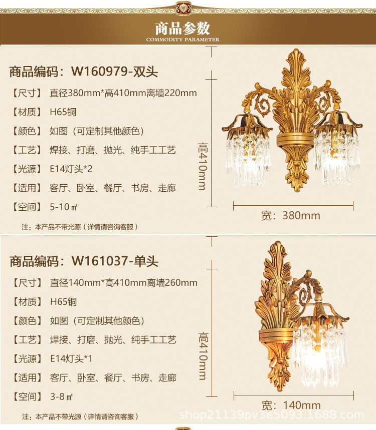 欧式全铜水晶壁灯法式客厅电视背景墙卧室床头灯楼梯过道镜前灯具