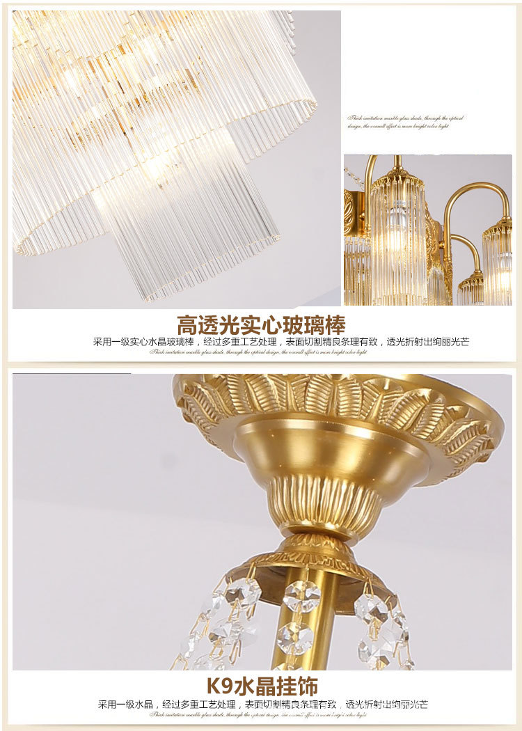 欧式全铜吊灯法式客厅卧室餐厅水晶灯轻奢别墅复式楼梯创意铜灯具