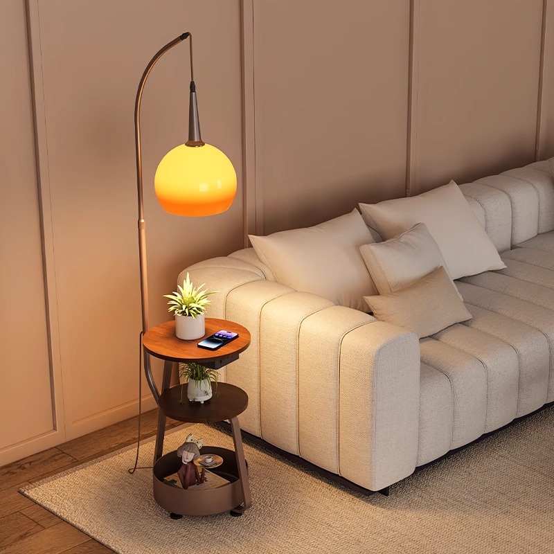 落地灯中古风卧室床头柜一体置物架柚子灯客厅沙发旁氛围感钓鱼灯