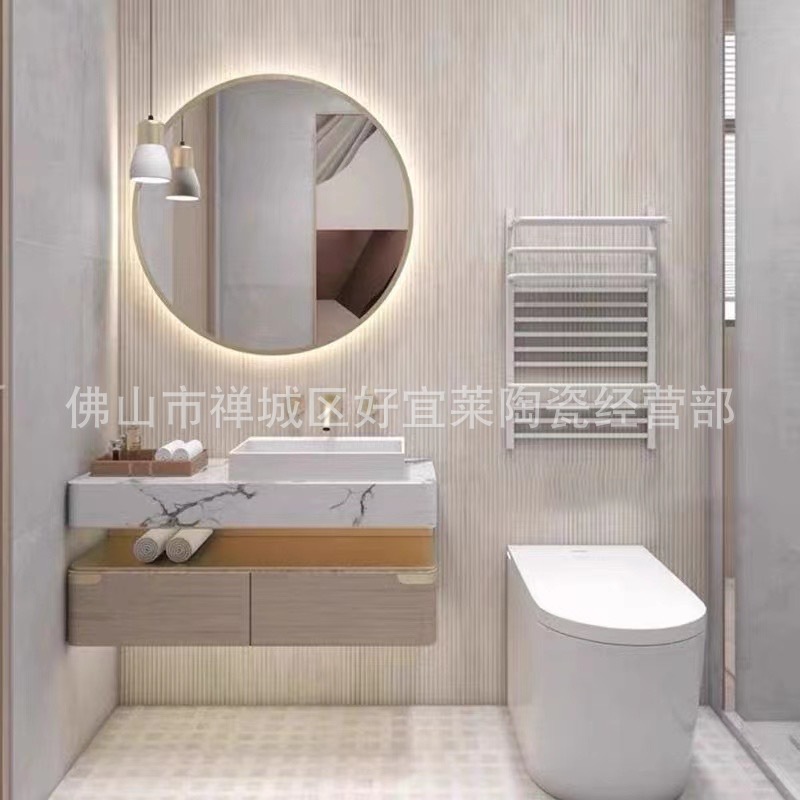 全瓷拉槽仿木纹瓷砖600X1200MM卫生间墙砖凹槽格栅条纹砖背景墙