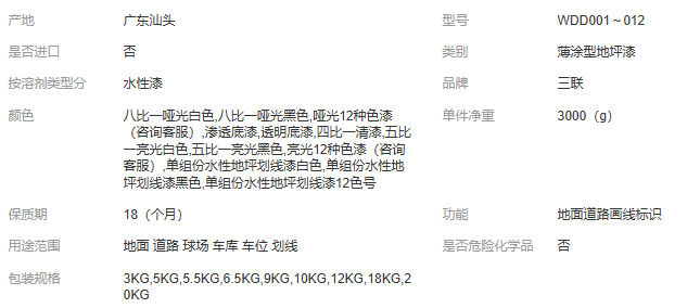 三联水性道路水泥路道球场标识画线停车场划线漆马路标线漆地坪漆