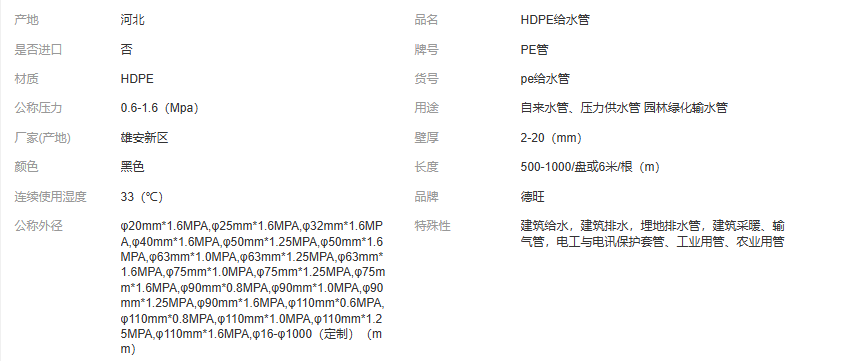 PE给水管厂家110大口径自来水供水给水排水园林绿化牵引pe给水管